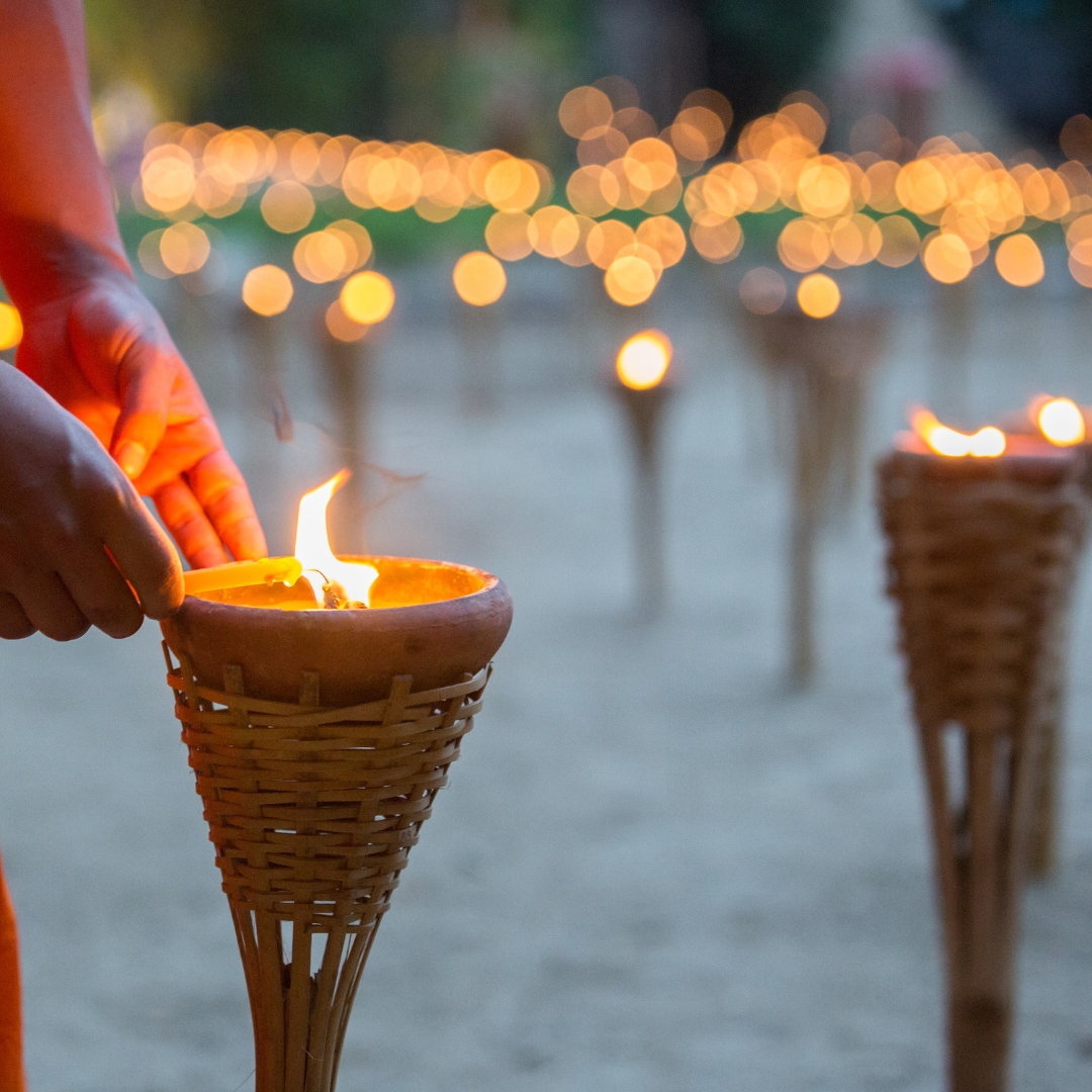 On the night of Loi Krathong, Chiang Mai people decorate small clay pots called Phang Pratheep with thousands of candles, which Lanna people believe bring wisdom and light to life.
